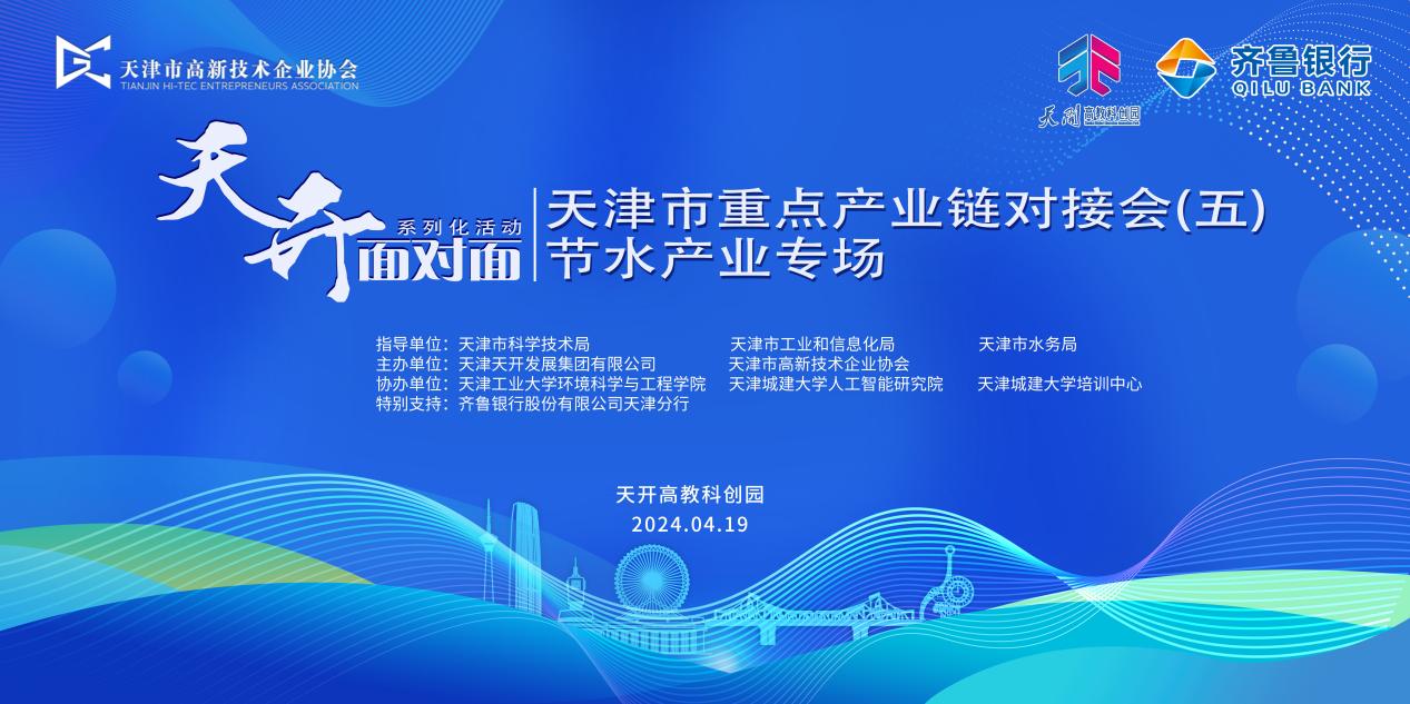 近日,“天开面对面”系列化活动——“天津市重点产业链对接会节水产业专场”在天开高教科创园成功举办,旨在认真落实习近平总书记对天津工作“三个着力”重要指示要求,牢记总书记“四个善作善成”重要嘱托,深入实施科教兴国战略、人才强国战略、创新驱动发展战略、京津冀协同发展战略的重要举措,学习贯彻落实市委、市政府“十项行动”部署,加快建设全国先进制造研发基地,助力天开园高质量建设发展,围绕天津市12条重点产业链布局节水产业创新链,加速培训我市新质生产力,此次活动由天津市科学技术局、天津市工业和信息化局、天津市水务局指导,天津天开发展集团有限公司、中科高新技术集团有限公司、天津市高新技术企业协会主办、天津工业大学环境科学与工程公司、太阳成集团tyc151cc官网人工智能研究院、太阳成集团tyc151cc官网培训中心协办。